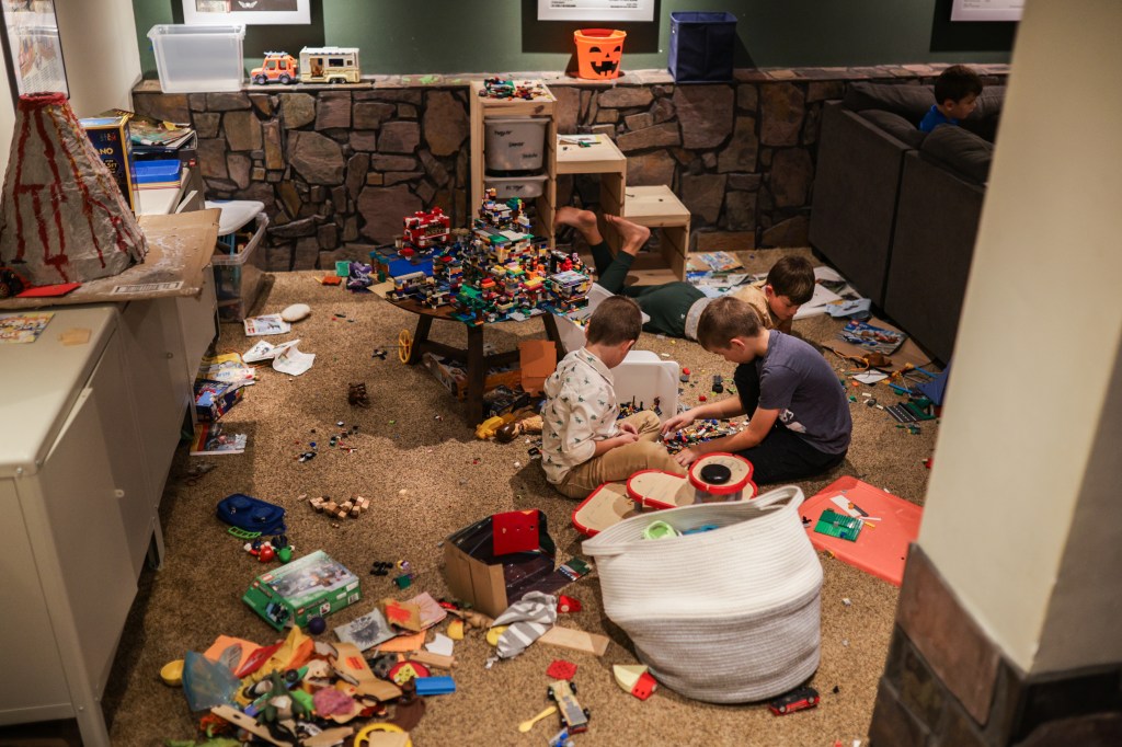 My sister’s basement is the boys’ favorite LEGO building spot. Cushy carpet to lay on and giant messes that only need to be cleaned up every few days? Yes and please, thank you.