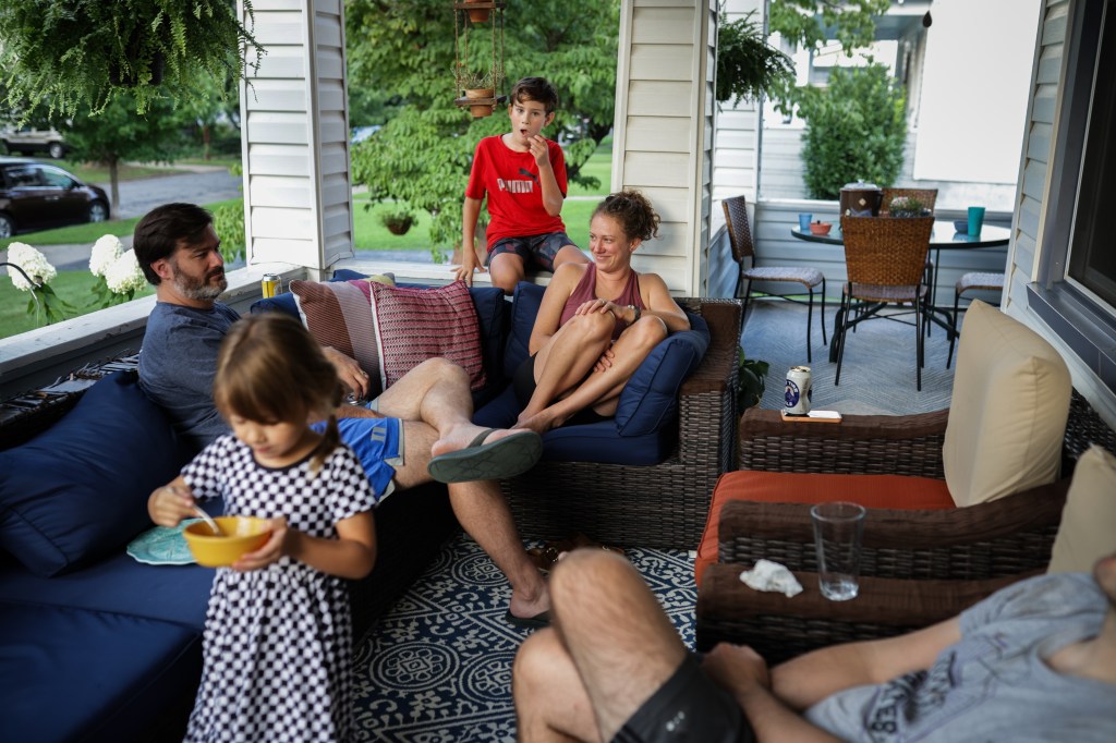 I snagged an L-shaped sofa with two armchairs and a coffee table off the Buy Nothing this summer and it’s now The Place to Be. I had to spend solid money buying new cushions and canvas repair tape, but it was still wayyy less than a brand new couch would have been. Also: the set of cushions I bought didn’t come with enough pillows for the arm chairs, but a neighbor randomly stopped by and happened to have in-really decent shape cushions she was getting rid of that just happened to fit perfectly (crazy, because the armchairs are oddly square!). I LOVE when that sort of thing happens.