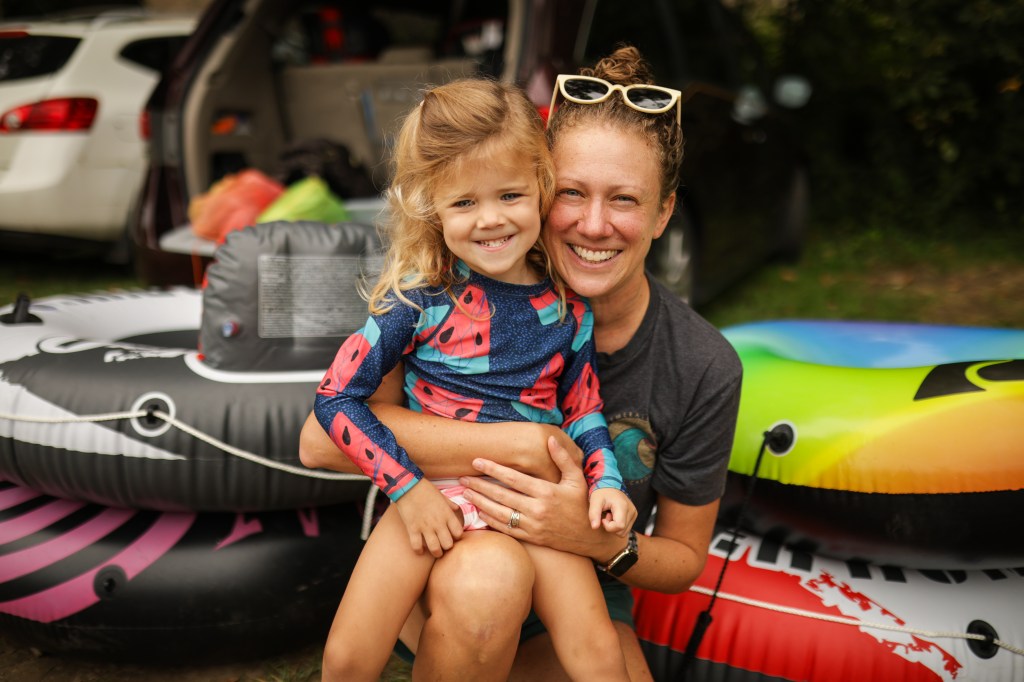 A rare photo with me actually in it. V and I were waiting around for the guys to finish getting tubes ready and decided cute mother/daughter photos were required asap. R was working very hard on having a presentable smile.