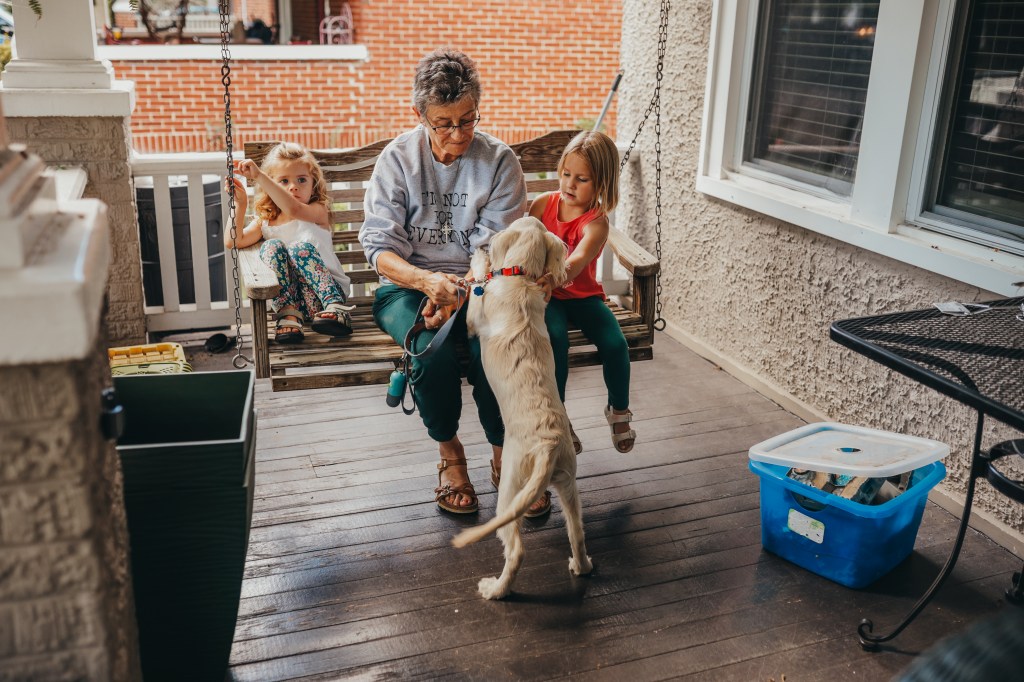 Finley: still wildly energetic, only slightly less prone to biting. E continues to be in his face at all times and completely oblivious to any nips or jumps, R remains steadfastly terrified of him.