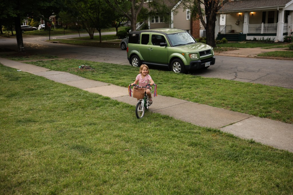 Fourth child problems: goes from refusing to touch a balance bike for a year because it isn’t the right color to learning how to ride a pedal bike in five minutes while Mama’s weeding and has her back turned. Now to convince her to wear her helmet.