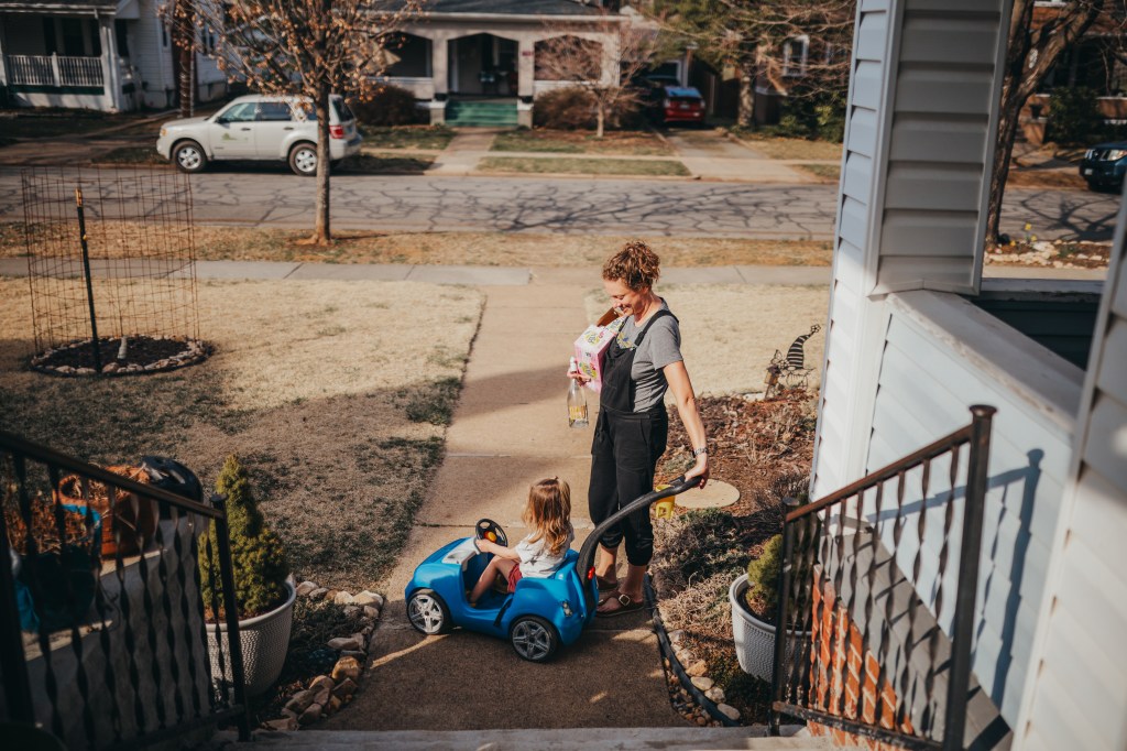 Life with a stubborn three-year-old means she has her own car just for the 1 block commute between houses.