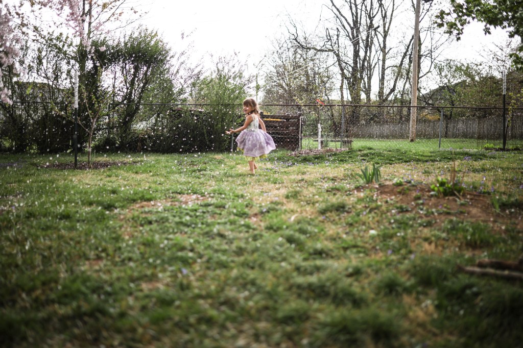 Blossom blizzard in March. Every time the wind gusts blew, thousands of pedals spun through the air. Within minutes of this photo, the storm broke and rain came pelting down.
