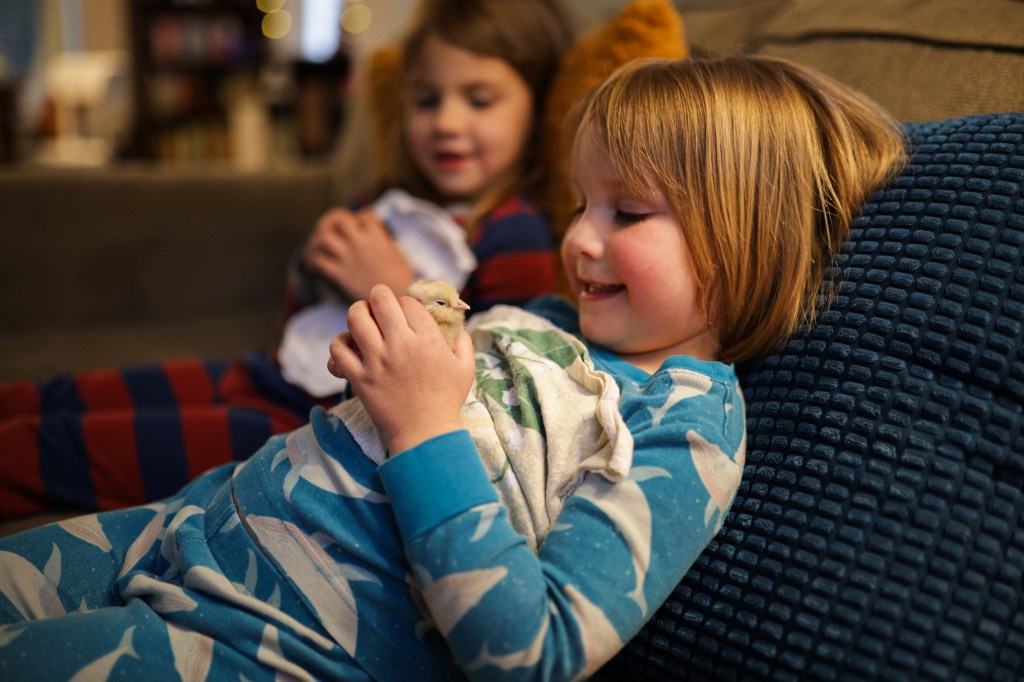 Chickies round two! This time the difference in kid interaction is startling: the big boys want to hold them all the time and I’m fairly comfortable letting them do so solo, N is a little nervous and loves them but mostly from afar, and E’s delight is over-the-top and rough – lots of reminders to be gentle and fears that I’ll find she’s killed a chick with her enthusiasm.