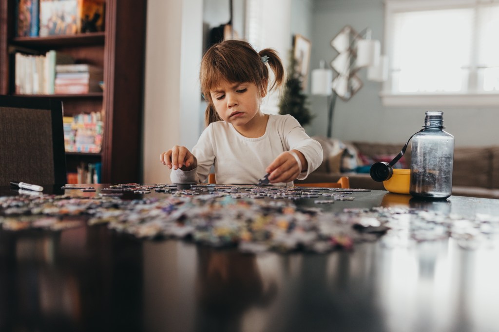 Puzzling is my favorite winter activity and this girl was here. for. it. She sat carefully sorting and flipping pieces for me for over an hour and then even tackled a 500 piece puzzle of her own when we finished this one. She had lots of (often unwanted) help, but was delighted when she got to put the final pieces into place.