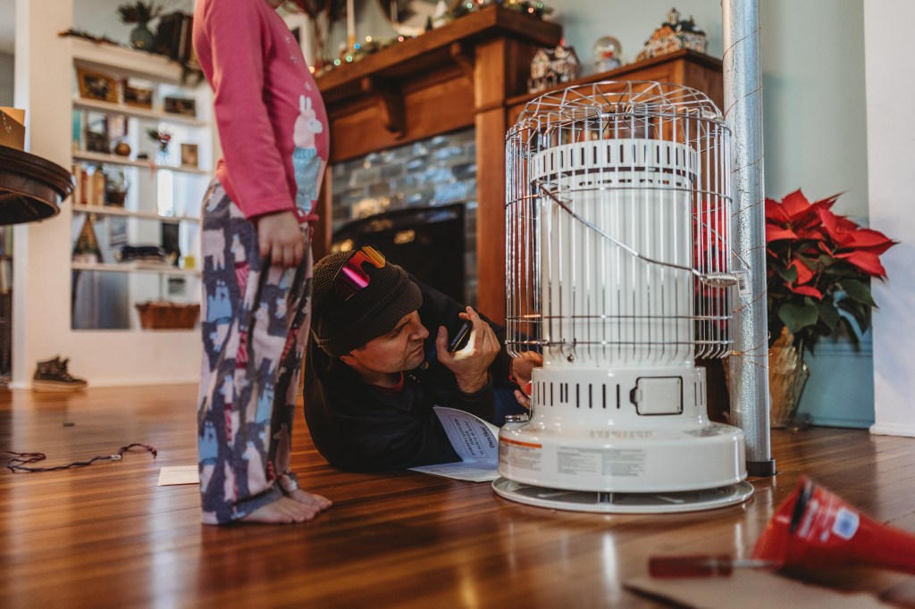 With a week of snow and ice and unusually cold temps in the forecast, V decided we should probably have at least *one* backup heat source. Our date that afternoon included a quick swing ’round to Home Depot to pick this bad boy up.