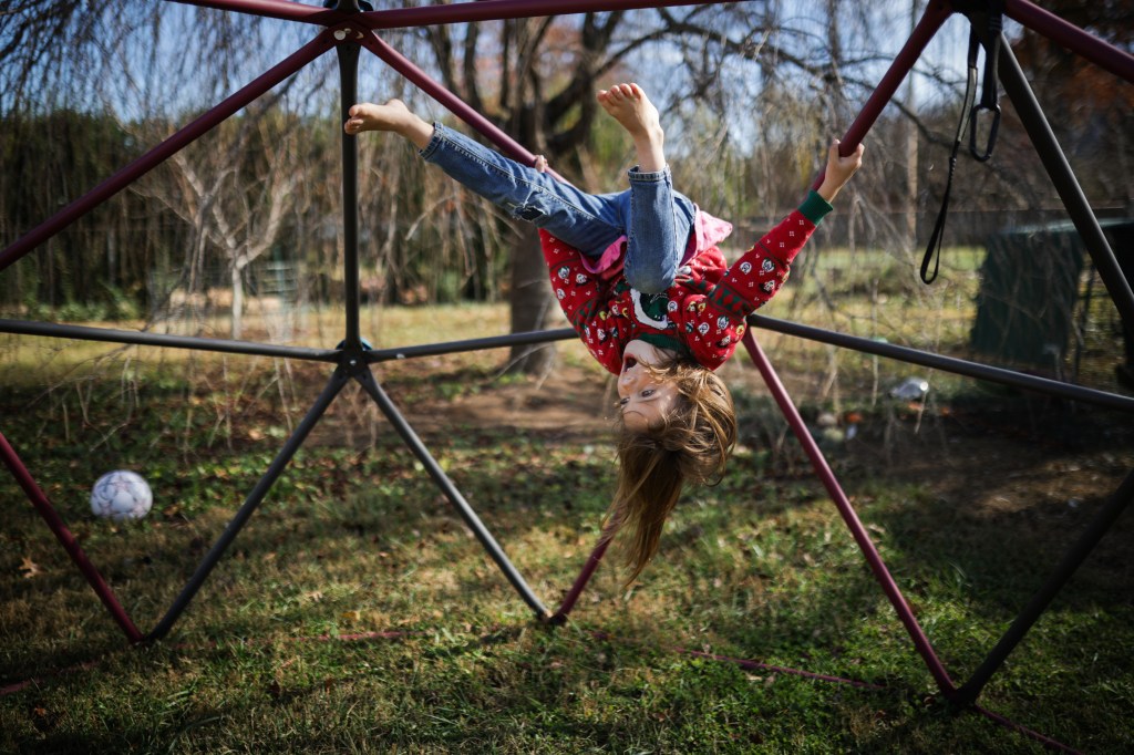 N is of the belief that there cant never been too many photographs taken of her flipping on the climbing dome.
